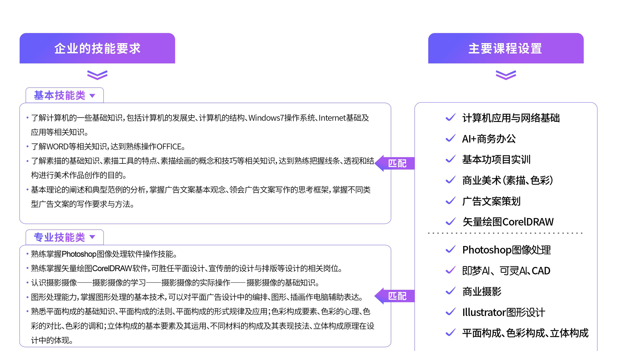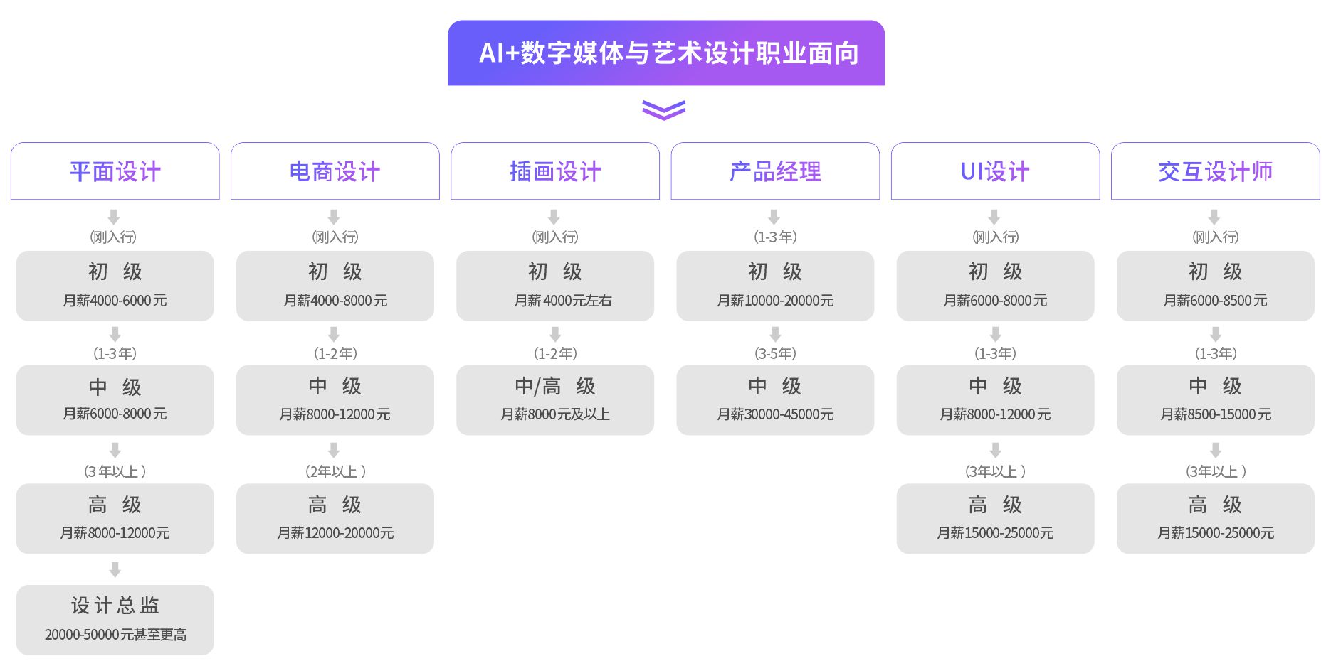廣告公司高級策劃師、高級平面設(shè)計師、網(wǎng)站高級設(shè)計師、出版社高級美術(shù)設(shè)計師、平面廣告、 UI高級設(shè)計師、圖標(biāo)設(shè)計師、APP界面設(shè)計師、產(chǎn)口經(jīng)理、特效制作師等復(fù)合型人才。